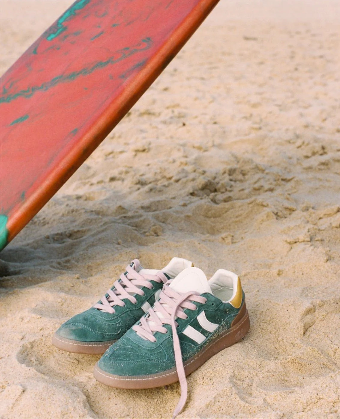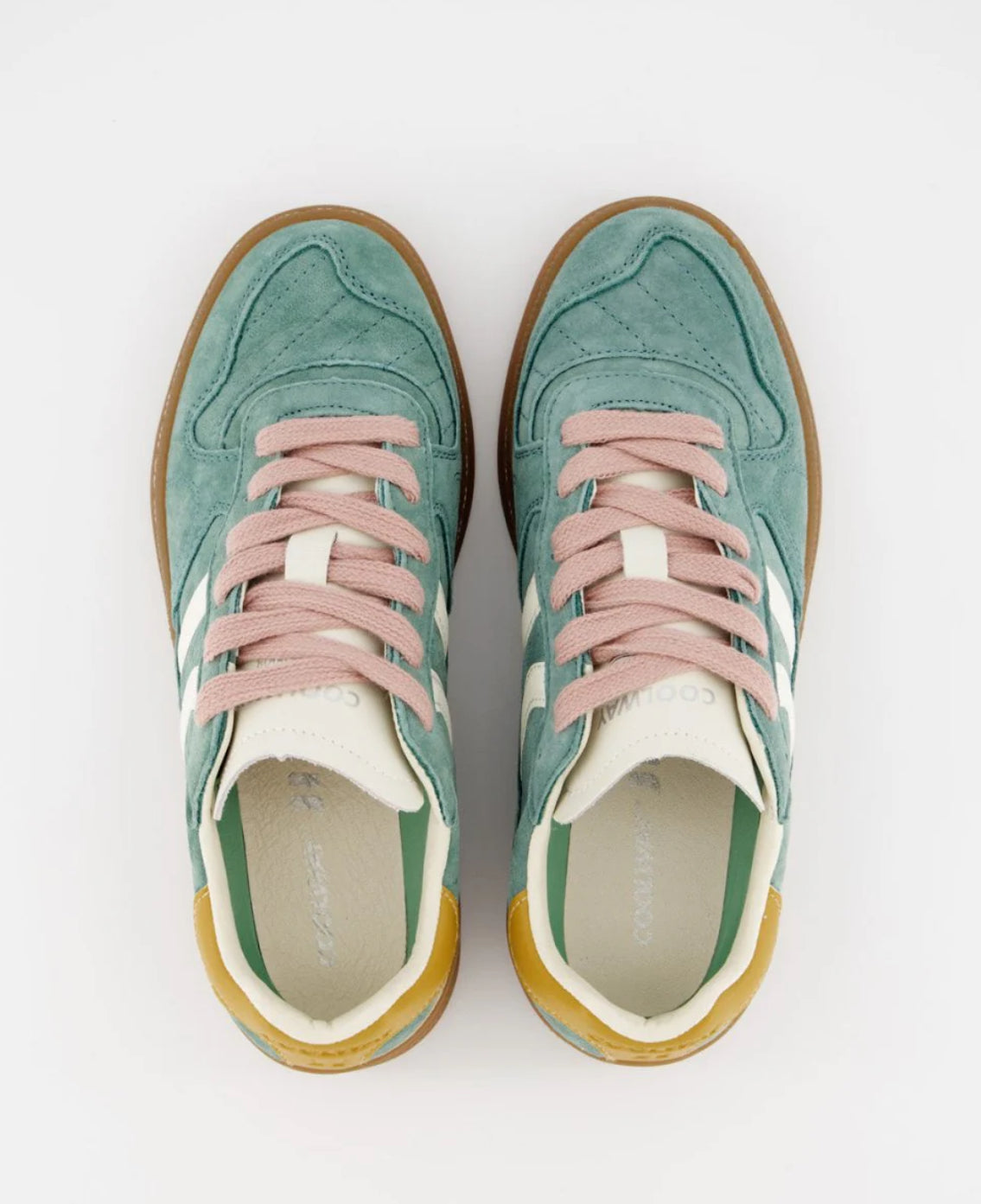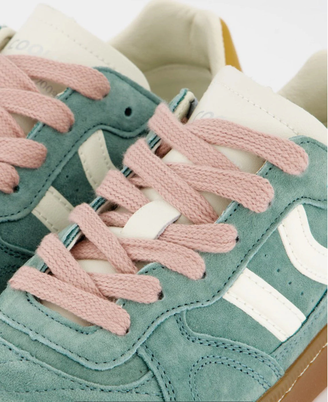 Zapatilla deportiva de serraje con detalles en contraste de color. Lengüeta de piel y preformada con un acolchado figurado. Vistas del forro en piel. Cordones planos de algodón en dos tonos intercambiables. Cuello ligeramente acolchado. La parte delantera lleva un refuerzo de pespuntes. Suela flexible de goma/caucho que aporta durabilidad y agarre. Cuenta con el nombre del modelo “GOAL” en lateral en oro viejo.